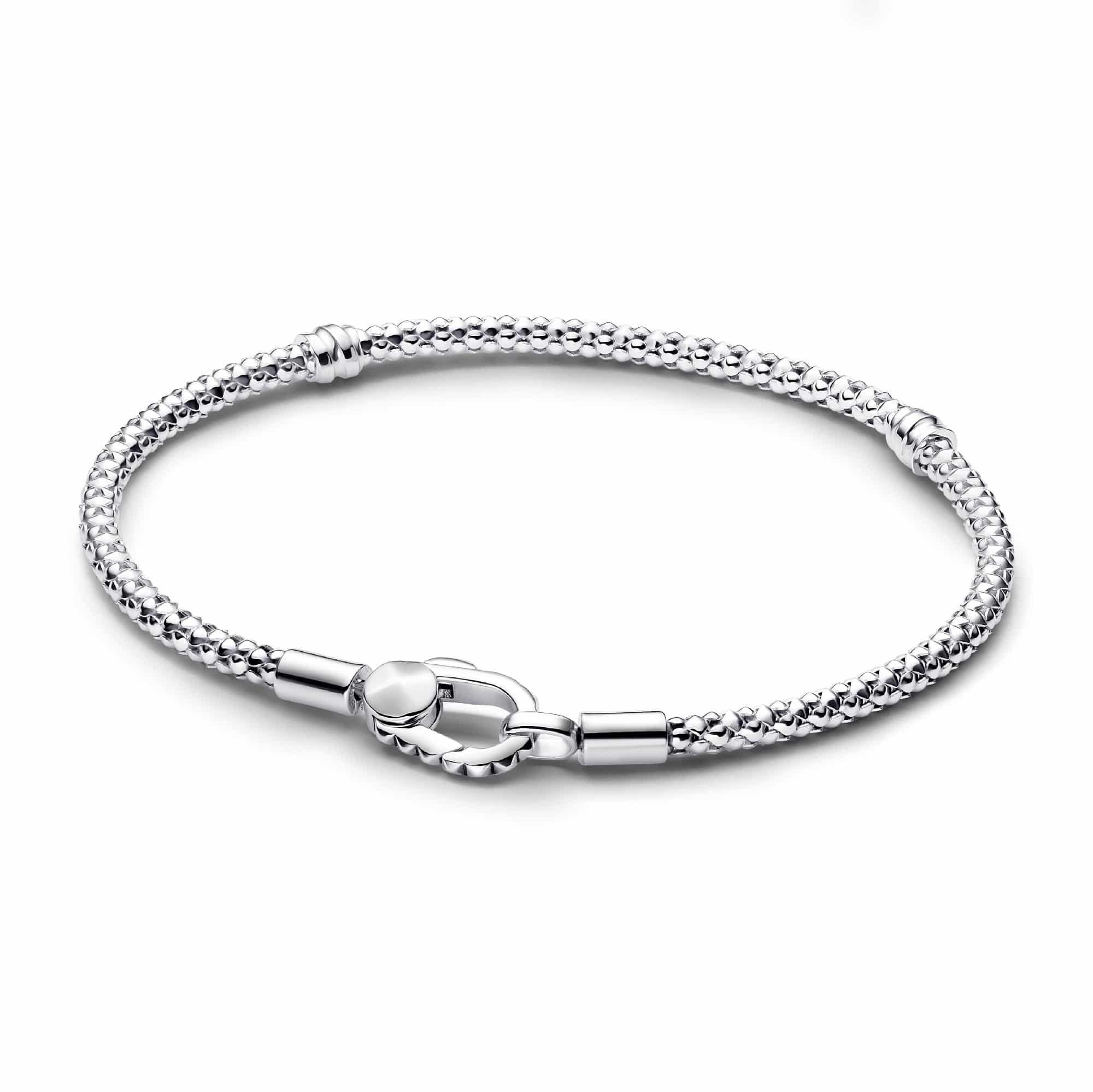 We presenteren met nog meer manieren om je favoriete bedels te dragen. Onze studded armband is gemaakt van een unieke textuur die je look diepte en dimensie geeft. De karabijnsluiting met studs houdt hem veilig rond je pols. Draag solo voor een subtiel statement en maak hem helemaal van jou met je favoriete bedels.