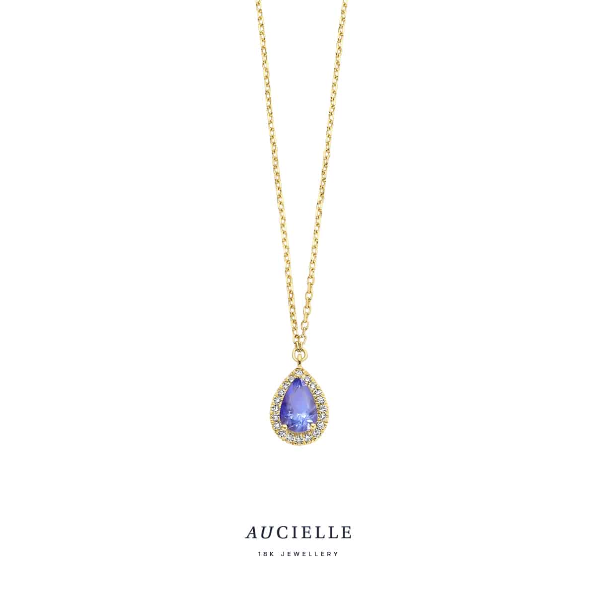 Collier Aucielle goud 18 kt, geel goud, 0.050 ct Nat. Diamant 0.35ct Tanzaniet